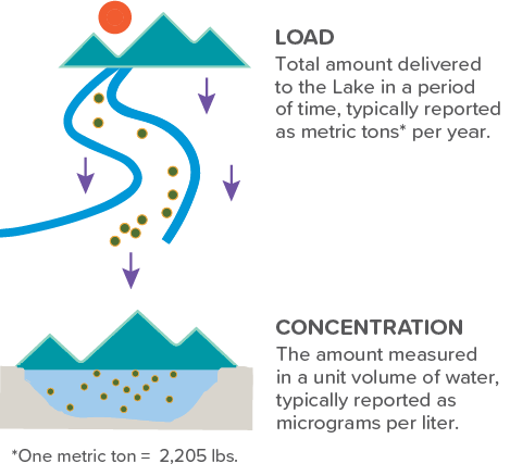 Most of the phosphorus that enters the Lake is delivered by tributary streams and rivers that drain the lands throughout the watershed. This phosphorus load from tributaries is estimated to be 921 metric tons (2.03 million lbs.) each year. Data collected by the LCBP’s Long Term Water Quality and Biological Monitoring Program has allowed scientists to calculate the loads delivered by each major tributary. Recent research shows that some efforts to reduce pollution are helping to reduce the loads delivered by the tributaries. The “Tributary P Loading” map shows changes in flow normalized loads (adjusted for variations in the amount of water that is delivered by the tributary from year to year).