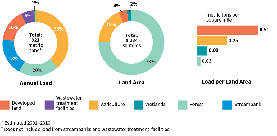 ag field runoffAgricultural activities are a major nonpoint source of phosphorus in the Basin and may also contribute significant quantities of sediment and toxic substances, such as pesticides. Major sources of agricultural phosphorus are manure and commercial fertilizer runoff from fields, soil erosion, runoff from livestock concentration areas, milkhouse effluent, runoff from stacked manure, livestock access to streams and ponds, and streambank erosion from livestock.